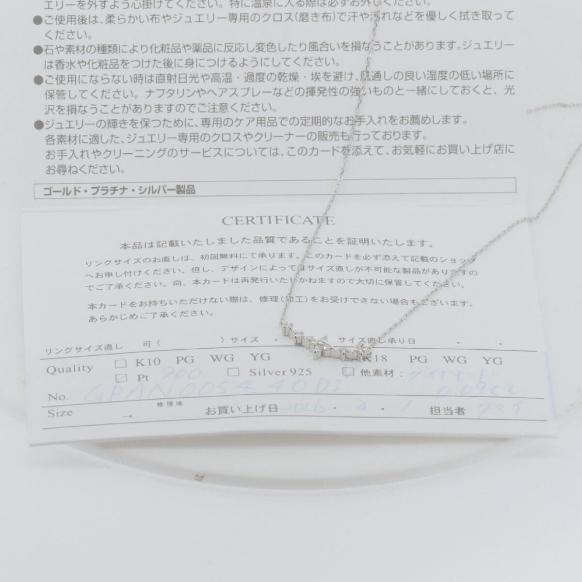 ギャランティカード(日付あり:2016/03/01 型番:GPAN005440DI)